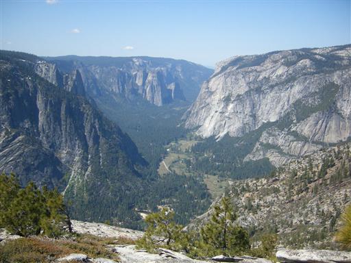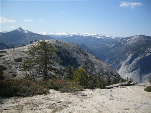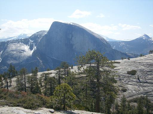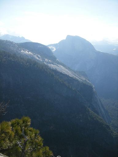 渓谷をはさんだ奥には迫力あるハーフドームが見える。