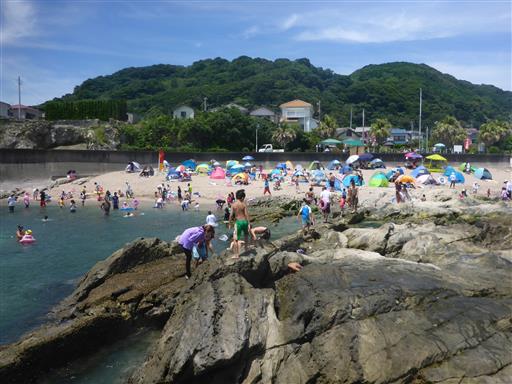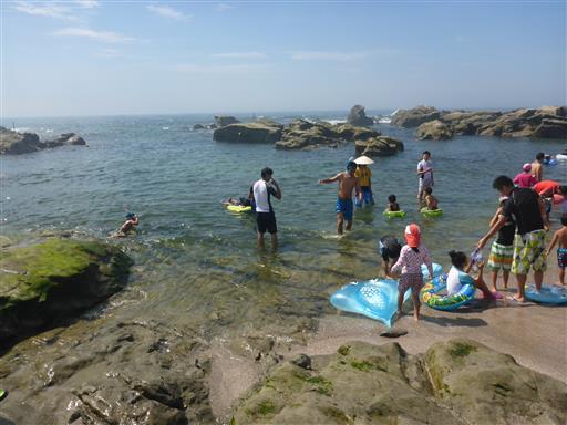 岩の外側も遊泳区域なのだが、泳いでいる人はほとんどいない。
