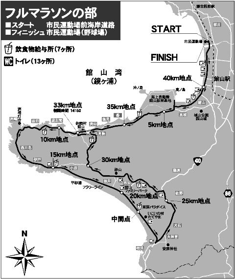 半年経って、マラソン大会の日を迎える。館山は遠いのでマラソン大会前日に移動、館山駅で合流して宿に移動する。みんな案外リラックスムードだ。合同練習なるものはほとんどやらなかったので、タイムを持っている一人を除いては、誰がどの程度走れるのか全くの未知。こちらは一月ほど前に右膝を痛めてしまい、練習を休んでずっと安静にしていた。久々に走るので体力が落ちていないか、そして膝が痛くならないかが心配だ。外に出ると夕日が東京湾の向こうに落ちていく。館山は美しいところだ。空はきれいに晴れ渡っている。夕飯は軽く宴会を行い、翌日に備えて早めに寝る。