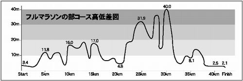 21km中間地点を通過。通過タイムは1時間45分。ほぼ想定通りのタイムだ。タイムは練習のときと変わらなくても、疲労感は練習のときより大きい。1ヶ月のブランクのせいか、暑いからか、コースにアップダウンがあるからか、理由は分からない。ペースはどんどん落ちていく。周りの人は全くペースを落とさないので、次々と抜かれていく。このタイムでこの辺りを走っている人は皆速いのだ。格好も皆まともでサポートタイツを履いている人や、短パンの人はいるが、自分のようにジャージを履いて走っている人などいない。それでも歩くような速度で走っていく。