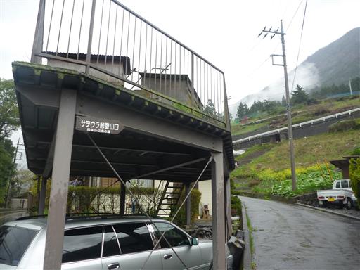 仕方がないのでカッパを着て出発する。登山道入口はバス停の近くですぐに見つかる。