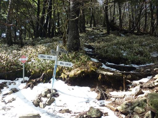 奥秩父主脈縦走路と合流。この道は雲取山から遥か金峰山まで続いている。