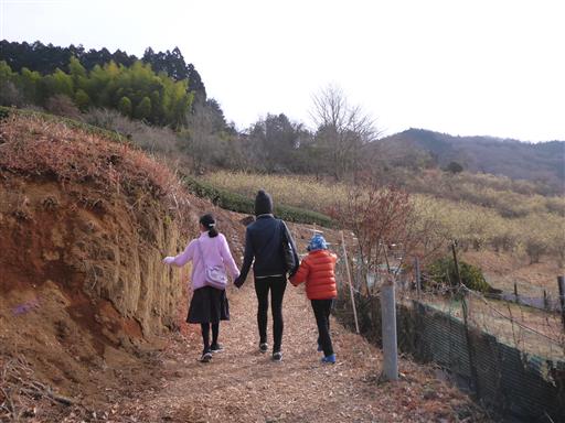 ロウバイを観察しながら、斜面に付けられた遊歩道を歩く。