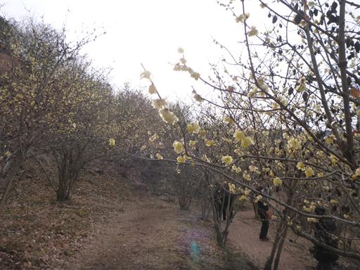 ロウバイのトンネル。もう少し花が多く咲いていたら見ごたえがあるのだが。