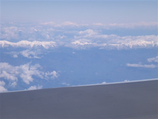 窓側の人が席を立ったタイミングで南アルプスを撮影。