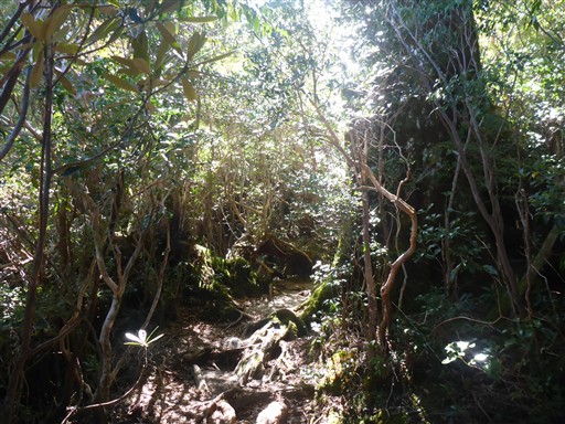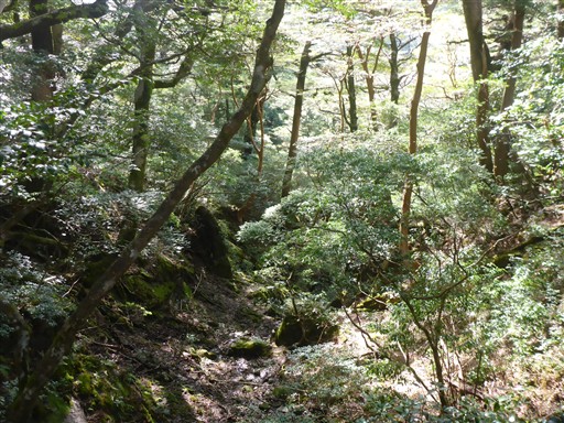 生い茂る木を避けながら、分かりにくい登山道を登っていく。