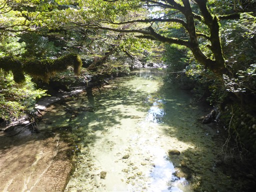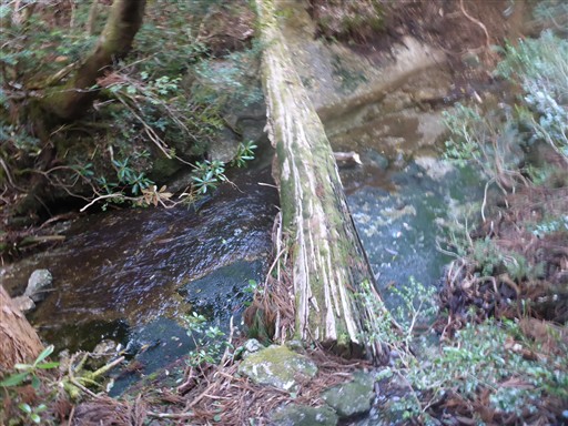 一本橋で沢を渡る。