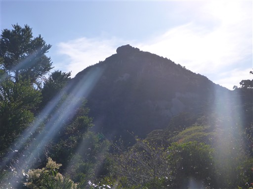 高盤岳展望台。逆光で山頂の豆腐岩が良く見えない。