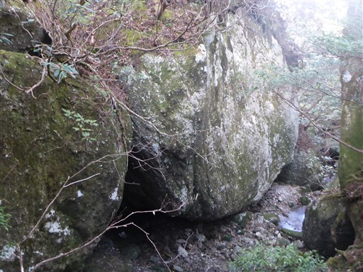 この岩には登ることができず、岩以外の部分は結構狭いので