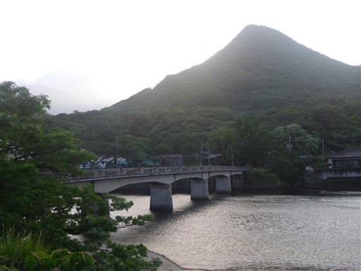 橋から鯛ノ川を見下ろす。ここには川から直接海に注ぐトローキの滝がかかっている。