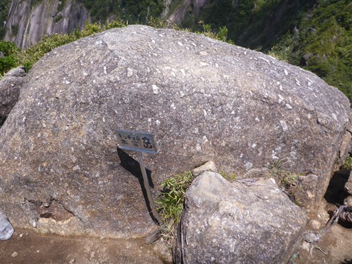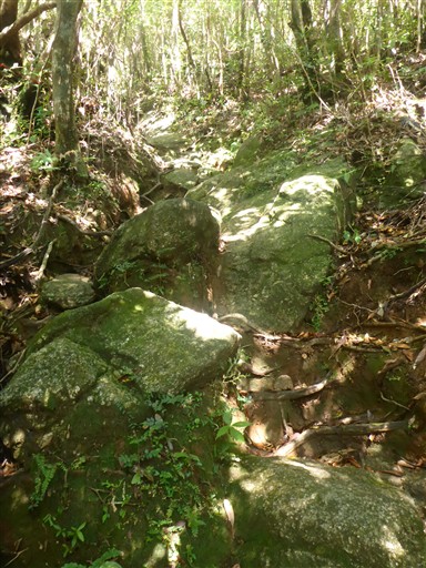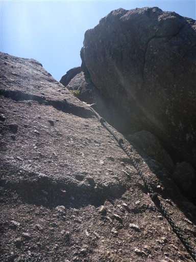 山頂直下の岩場。傾斜は緩いので簡単に登れる。
