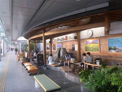 飛行機が1時間ほど遅れると連絡があり、暇なので足湯に浸かる。