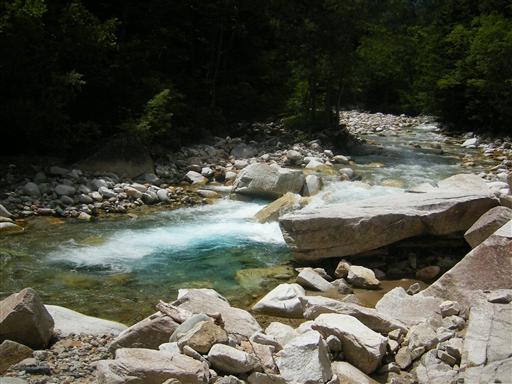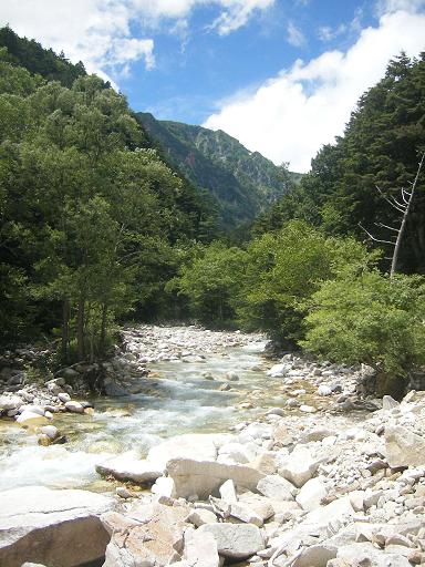 梓川を流れる水は透き通っていて、とてもきれい。