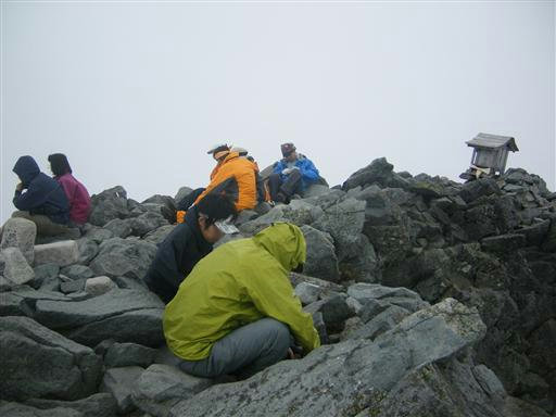 山頂に着いた頃には雲に覆われてしまい、展望が全くない。