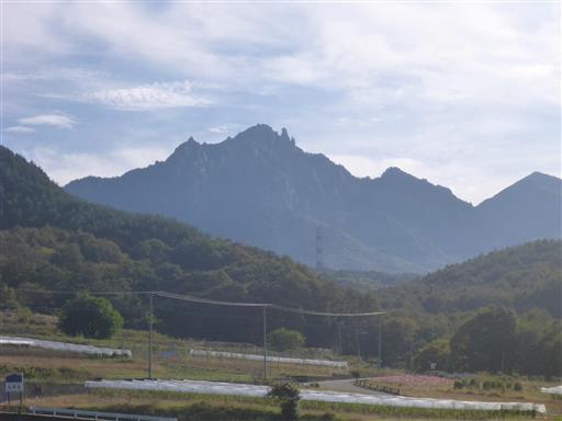 車で移動中、瑞牆山の立派な姿が車窓から見える。