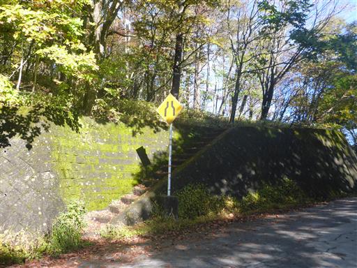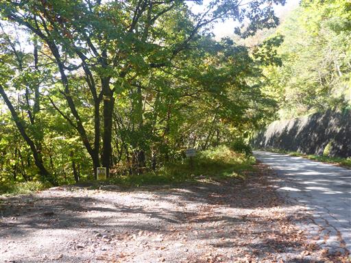 駐車場のすぐ反対側が登山口だ。この峠道は意外に車がよく通る。