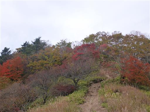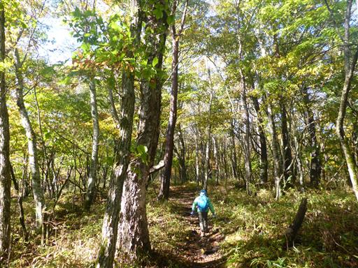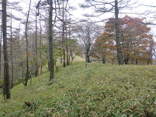 横尾山から先は途端に道は狭くなり笹薮登山道になる。