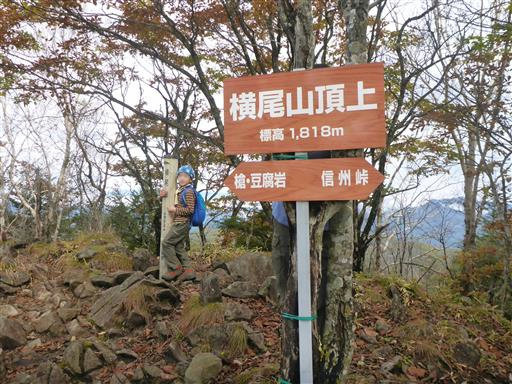 | ルート (Map) | 信州峠駐車場 (8:59) - (9:55) カヤトの原 - (10:25) 横尾山 - (11:11) 豆腐岩 - (12:00) 横尾山 (13:00) - (13:27) カヤトの原 - (14:16) 信州峠駐車場 |