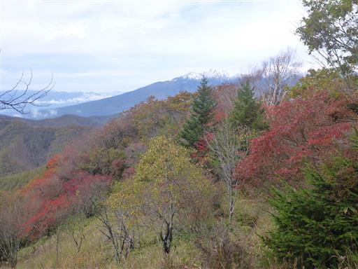 大きな展望は広がらないが、紅葉と八ヶ岳を望むことができる。