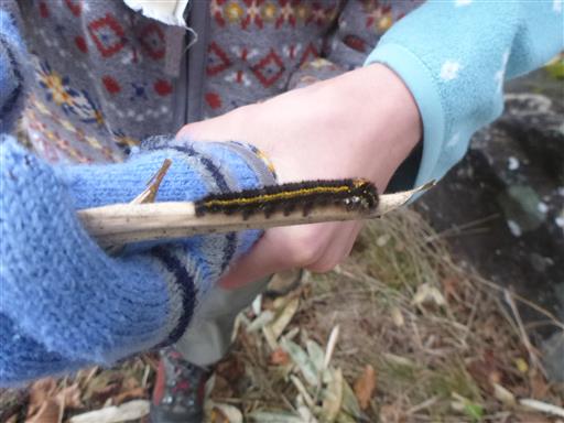 毛虫を発見。もう寒いが無事成虫になれるだろうか?