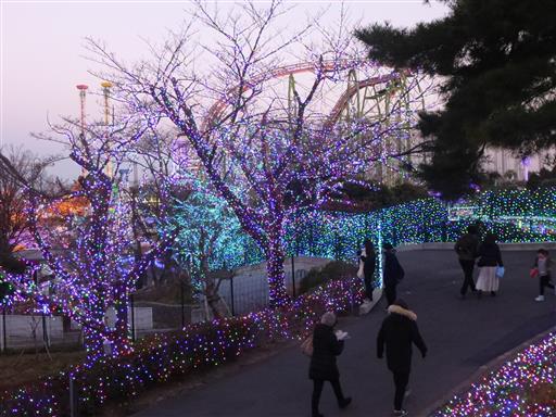 ジェットコースターもライトアップされている。