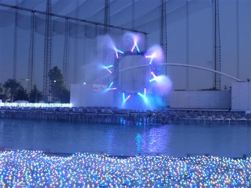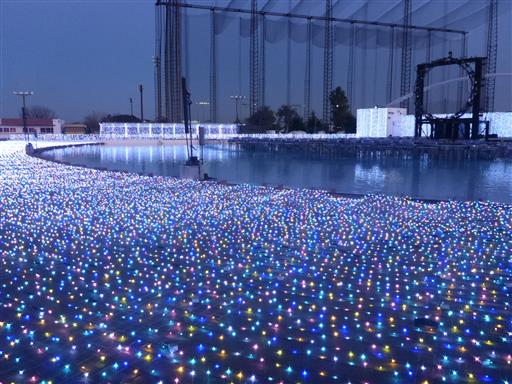 プールのイルミネーションがさらにきれいに輝く。