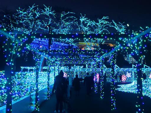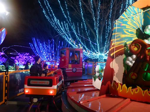 イルミネーションの中、汽車が進む。
