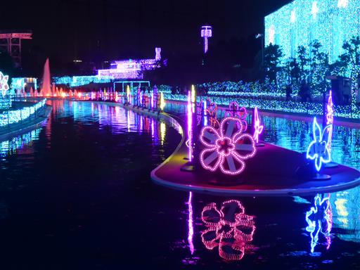 遊園地エリアに戻ってくる。たくさんの光で満ちていて華やかだ。