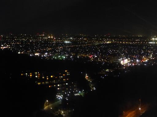 夜景。ちょっと都心部から離れているので、光の量は少ない。