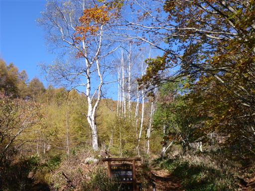 しばらく歩くと開けた場所に到着する。ここは登山道の十字路になっている。