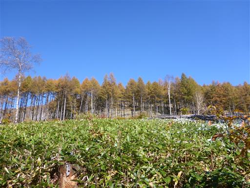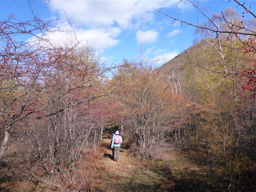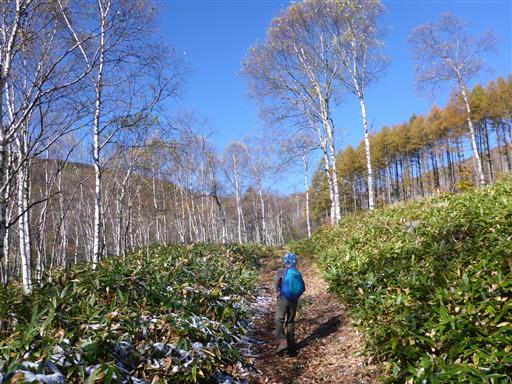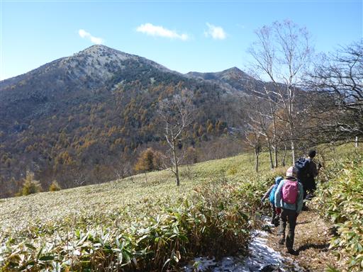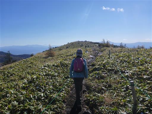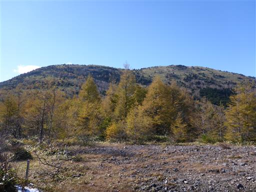 遠く湯ノ丸山の丸い山頂部が見えてくる。