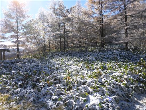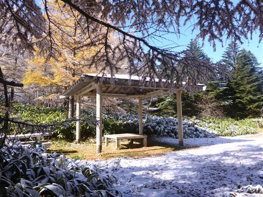 鹿沢温泉駐車場に車を停める。標高1530m。