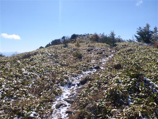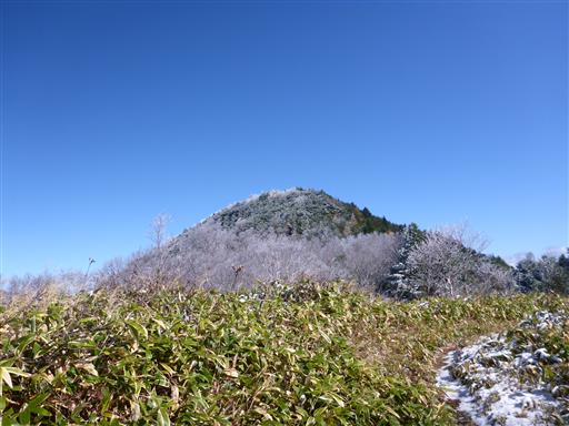 木が少なくなってきて丸い頭が見えてきた。山頂までもう少しだ。