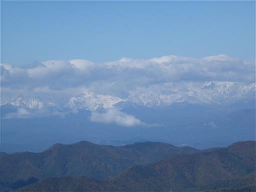 遠くには北アルプス。残念ながら雲がかかっていて全貌は拝めない。