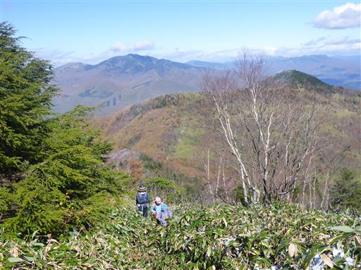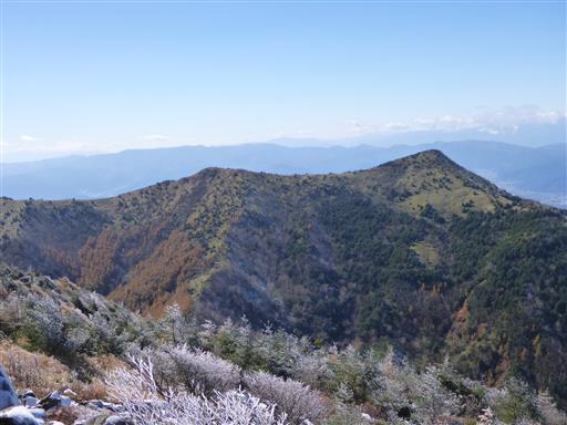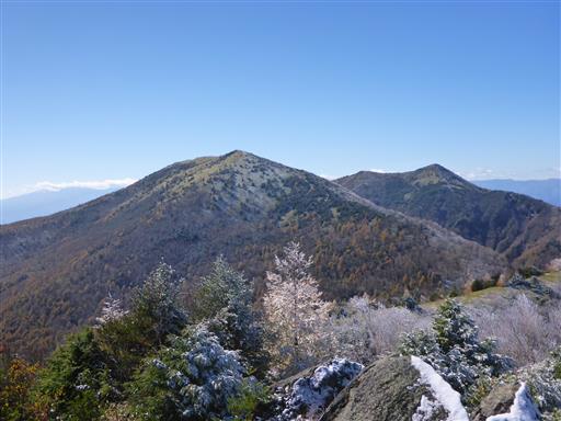 反対方向にはこれから目指す湯ノ丸山と、その奥に烏帽子岳が見えている。