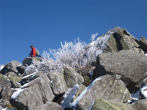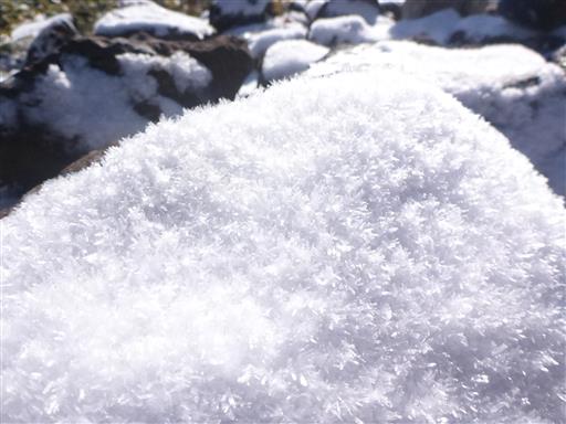 山頂に降り積もった雪は表面がトゲトゲになっている。