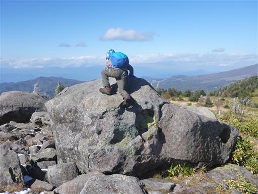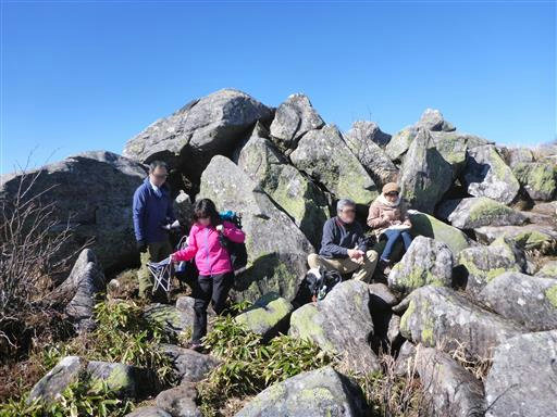 岩だらけのこの山頂からも、もちろん360度の展望が楽しめる。