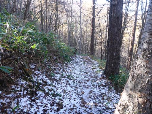 樹林帯に入ると雪が上から落ちてくる。背中に入るとすごく冷たい。